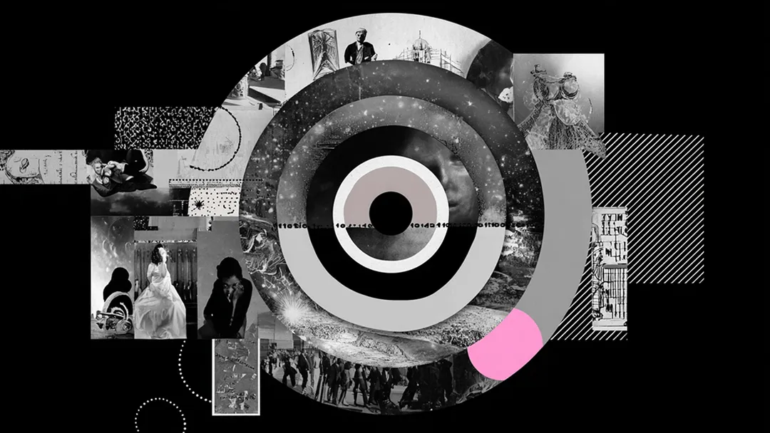 Portal-tech website, monochrome collage, dotted details, dark themed